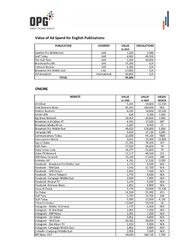 Value of Ad Spend for English Publications