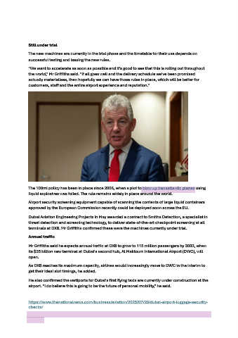 terminals at DXB. Mr Griffiths confirmed these were the machines currently under trial.