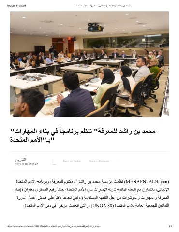 10/2/25, 11:08 AM "ةدﺣﺗﻣﻟا مﻣﻷا"ـﺑ تارﺎﮭﻣﻟا ءﺎﻧﺑ ﻲﻓ ً ﺎﺟﻣﺎﻧرﺑ مظﻧﺗ "ﺔﻓرﻌﻣﻠﻟ دﺷار نﺑ دﻣﺣﻣ"