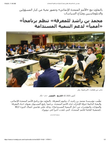 10/2/25, 11:08 AM «ﺔﻣادﺗﺳﻣﻟا ﺔﯾﻣﻧﺗﻟا مﻋدﻟ «ً ﺎﯾﻣﻣأ» ً ﺎﺟﻣﺎﻧرﺑ مظﻧﺗ «ﺔﻓرﻌﻣﻠﻟ دﺷار نﺑ دﻣﺣﻣ