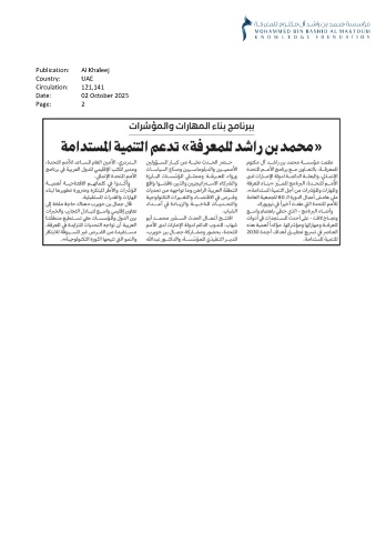 Publication: Al Khaleej Country: UAE Circulation: 121,141 Date: 02 October 2025 Page: 2