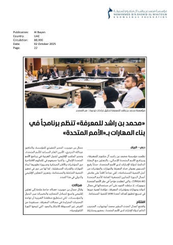 Publication: Al Bayan Country: UAE Circulation: 88,000 Date: 02 October 2025 Page: 22