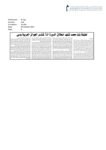 Publication: Al Fajr Country: UAE Circulation: 34,596 Date: 09 October 2025 Page: 8