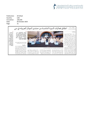 Publication: Al Etihad Country: UAE Circulation: 109,640 Date: 09 October 2025 Page: 31