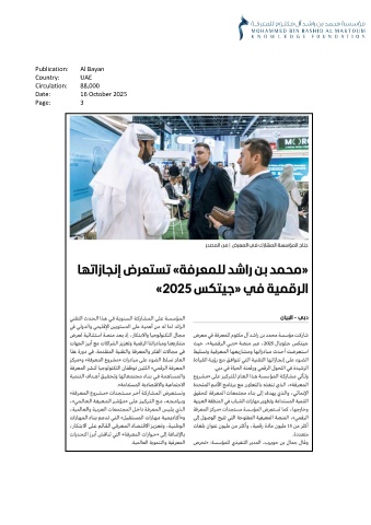 Publication: Al Bayan Country: UAE Circulation: 88,000 Date: 16 October 2025 Page: 3