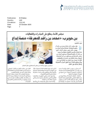 Publication: Al Khaleej Country: UAE Circulation: 121,141 Date: 23 October 2025 Page: 7