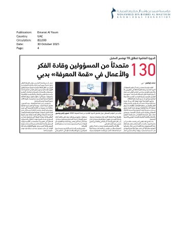 Publication: Emarat Al Youm Country: UAE Circulation: 80,000 Date: 30 October 2025 Page: 4