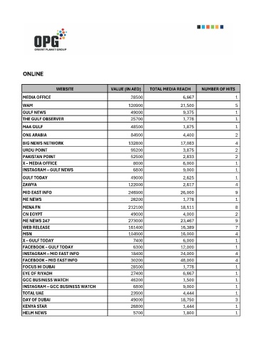 WEBSITE VALUE (IN AED) TOTAL MEDIA REACH NUMBER OF HITS