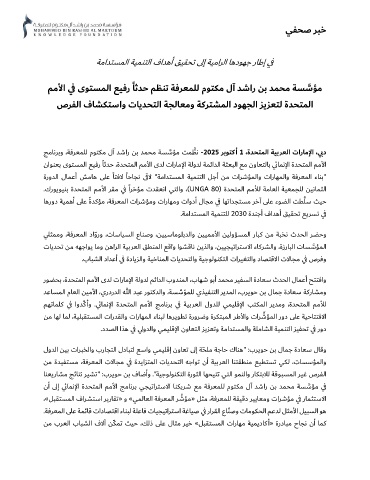 .كرﻮﻳﻮﻴﻨﺑ ةﺪﺤﺘﻤﻟا ﻢﻣﻷا ﺮﻘﻣ ي ﻓ ًاﺮﺧﺆﻣ تﺪﻘﻌﻧا ﻲﺘﻟاو ،( UNGA 80 ) ةﺪﺤﺘﻤﻟا ﻢﻣﻸﻟ ﺔﻣﺎﻌﻟا ﺔﻴﻌﻤﺠﻠ ﻟ ﻦﻴﻧﺎﻤﺜﻟا