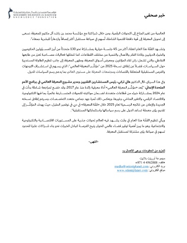 تﺎﻬﺟﻮﺘﻟا فاﺮـــــﺸﺘـــــﺳا ي ﻓ ﻢﻬـــــﺴﻳ يﺬﻟا ، " ﻲﻤﻟﺎﻌﻟا ﺔﻓﺮﻌﻤﻟا ﺮ � ـــــﺷﺆﻣ " ﻦﻣ 2025 ﺔﺨـــــﺴﻧ قﻼﻃإ ﻦﻋ ﻼـــــﻀﻓ ،ت ﺎـــــﺳﺎﻴـــــﺴﻟا لﻮﺣ