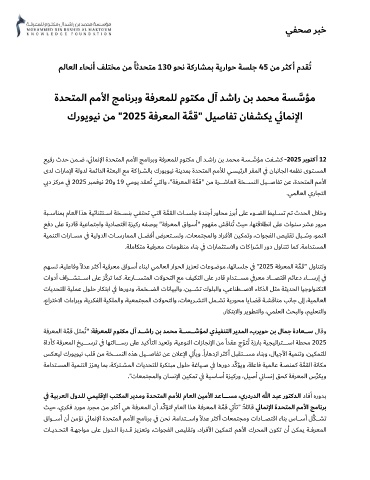 ي ﺑد ﺰﻛﺮﻣ ي ﻓ 2025 ﺮﺒﻤﻓﻮﻧ 20 و 19 ﻲﻣﻮﻳ ﺪﻘﻌ ُﺗ ﻲﺘﻟاو " ، ﺔﻓﺮﻌﻤﻟا ﺔ � ﻤﻗ " ﻦﻣ ةﺮــــــﺷﺎﻌﻟا ﺔﺨــــــﺴﻨﻟا ﻞﻴــــــﺻﺎﻔﺗ ﻦﻋ ،ةﺪﺤﺘﻤﻟا ﻢﻣﻷا