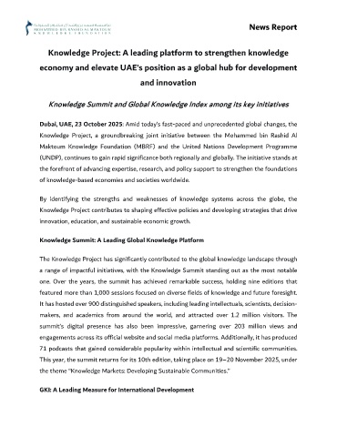 Knowledge Summit and Global Knowledge Index among its key initiatives