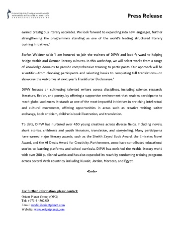 stories to learning platforms and school curricula. DIPW has enriched the Arabic literary world
