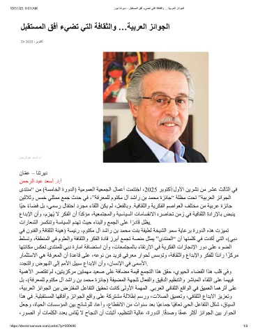 ﻦﯿﺛﻼﺛو ﺲﻤﺧ ﻲﻠﺜﻤﻣ ﻊﻤﺟ ثﺪﺣ ﻲﻓ ،”ﺔﻓﺮﻌﻤﻠﻟ مﻮﺘﻜﻣ لآ ﺪﺷار ﻦﺑ ﺪﻤﺤﻣ ةﺰﺋﺎﺟ“ ﺔﻠﻈﻣ ﺖﺤﺗ ”ﺔﯿﺑﺮﻌﻟا ﺰﺋاﻮﺠﻟا