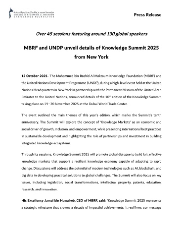 MBRF and UNDP unveil details of Knowledge Summit 2025
