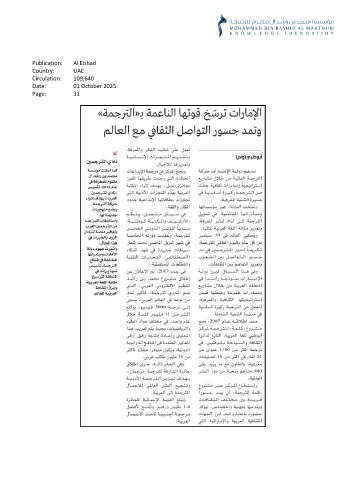 Publication: Al Etihad Country: UAE Circulation: 109,640 Date: 01 October 2025 Page: 31