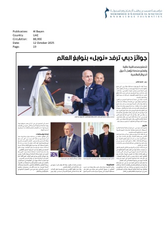 Publication: Al Bayan Country: UAE Circulation: 88,000 Date: 12 October 2025 Page: 19