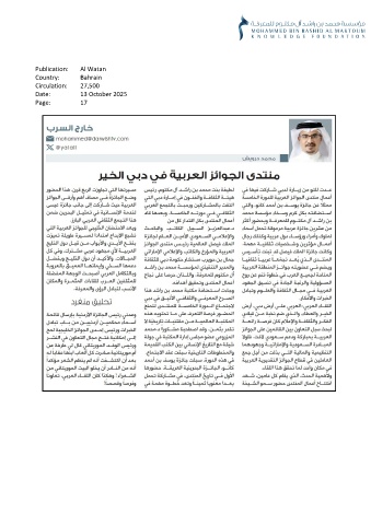 Publication: Al Watan Country: Bahrain Circulation: 27,500 Date: 13 October 2025 Page: 17