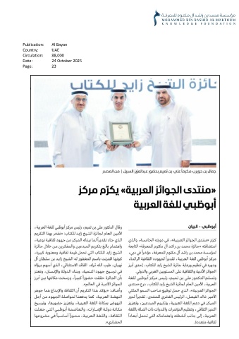 Publication: Al Bayan Country: UAE Circulation: 88,000 Date: 24 October 2025 Page: 23