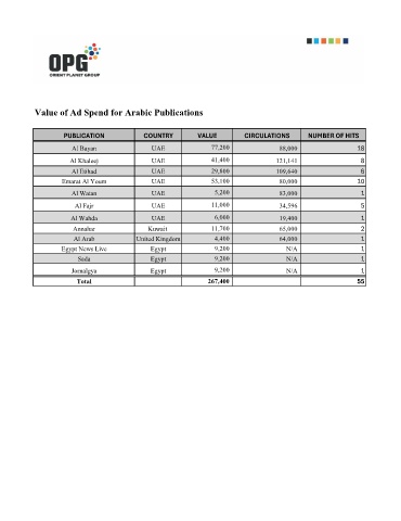 Value of Ad Spend for Arabic Publications