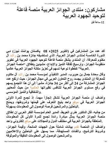 ﺔﻠﻋﺎﻓ ﺔﺼﻨﻣ ﺔﯿﺑﺮﻌﻟا ﺰﺋاﻮﺠﻟا ىﺪﺘﻨﻣ :نﻮﻛرﺎﺸﻣ
