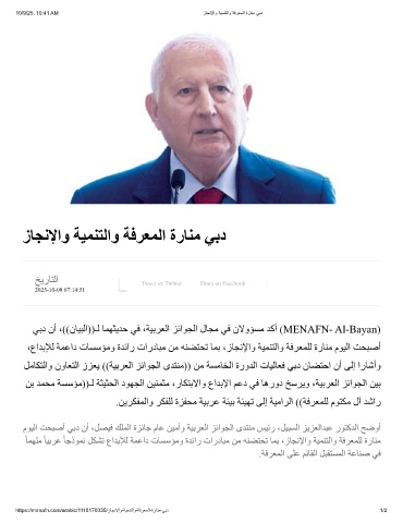 https://menafn.com/arabic/1110170335/زﺎﺟﻧﻹاو-ﺔﯾﻣﻧﺗﻟاو-ﺔﻓرﻌﻣﻟا-ةرﺎﻧﻣ-ﻲﺑد 1/2