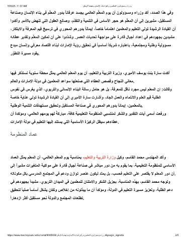 دﺎﻣﻌﻟا لﺛﻣﯾ مﻠﻌﻣﻟا نأ ،ﻲﻣﻟﺎﻌﻟا مﻠﻌﻣﻟا موﯾ ﺔﺑﺳﺎﻧﻣﺑ ،مﯾﻠﻌﺗﻟاو ﺔﯾﺑرﺗﻟا ةرازو لﯾﻛو ،مﺳﺎﻘﻟا دﻣﺣﻣ سدﻧﮭﻣﻟا دﻛأو