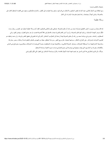 وھ ﮫﻧﯾﻛﻣﺗو ﮫﻣﻋد نأو ،ةدﺎﯾرﻟاو مدﻘﺗﻟا ﻖﯾﻘﺣﺗ ﻰﻟإ ﺢﻣطﺗ ﺔﻣأ يﻷ مھﻷا رﺎﻣﺛﺗﺳﻻا وھ مِﻠﻌﻣﻟا نﺄﺑ ً ﺎﺧﺳار ً ﺎﻧﺎﻣﯾإ ﺔﻓرﻌﻣﻠﻟ موﺗﻛﻣ لآ دﺷار نﺑ دﻣﺣﻣ ﺔﺳﱠﺳؤﻣ ﻲﻓ نﻣؤﻧ» :فﺎﺿأو .«لﺑﻘﺗﺳﻣﻟا
