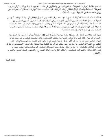 تاراوﺣ نﻛر" ﺎﮭﻠّﻣﻛﯾو ،ﺔﻣﮭﻠُﻣ ةرﯾﺻﻗ تﺎﺳﻠﺟ ﻲﻓ نﯾرﻛﻔﻣﻟاو نﯾﻋدﺑﻣﻟا نﻣ ﺔﺑﺧﻧ "ﺔﻓرﻌﻣﻟا تاراوﺣ" ﺔﻋﺎﻗ فﯾﺿﺗﺳﺗ