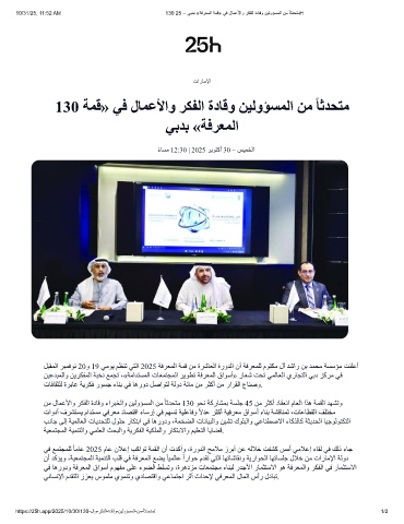 10/31/25, 11:52 AM 130 25 – ﻲﺑدﺑ «ﺔﻓرﻌﻣﻟا ﺔﻣﻗ» ﻲﻓ لﺎﻣﻋﻷاو رﻛﻔﻟا ةدﺎﻗو نﯾﻟوؤﺳﻣﻟا نﻣ ً ﺎﺛدﺣﺗﻣH