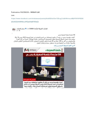 Publication: FACEBOOK – MISBAR UAE Link: https://www.facebook.com/misbaruae/posts/pfbid02KsitDw1DSzxg1Ux6HHmeunBfjM1N1KMZU6 JjVz4A2UiH6fN6cLkMQqAhtj9YWJqQl