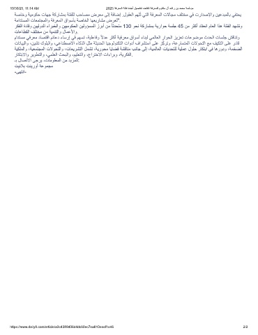 رﻛﻔﻟا ةدﺎﻗو نﯾﯾﻟودﻟا ءارﺑﺧﻟاو نﯾﯾﻣوﻛﺣﻟا نﯾﻟوؤﺳﻣﻟا زرﺑأ نﻣ ً ﺎﺛدﺣﺗﻣ 130 وﺣﻧ ﺔﻛرﺎﺷﻣﺑ ﺔﯾراوﺣ ﺔﺳﻠﺟ 45 نﻣ رﺛﻛأ دﺎﻘﻌﻧا مﺎﻌﻟا اذھ ﺔﱠﻣﻘﻟا دﮭﺷﺗو
