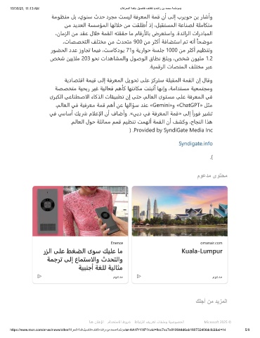 ﻲﻓ يسﺎﺳأ ﻚﻳرش مالﻋإلا نأ فﺎﺿأو .«ﻲﺑد ﻲﻓ ﺔﻓﺮﻌﻤﻟا ﺔﻤﻗ» ﻰﻟإ ًارﻮﻓ ﺮﻴﺸﺗ