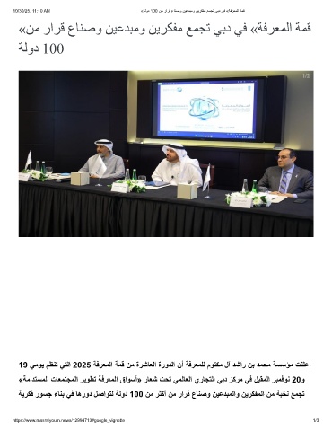 10/30/25, 11:10 AM «ﺔﻟود 100 نﻣ رارﻗ عﺎﻧﺻو نﯾﻋدﺑﻣو نﯾرﻛﻔﻣ ﻊﻣﺟﺗ ﻲﺑد ﻲﻓ «ﺔﻓرﻌﻣﻟا ﺔﻣﻗ