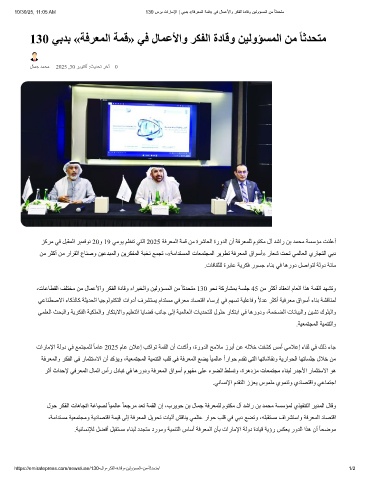 10/30/25, 11:05 AM 130 سرﺑ تارﺎﻣﻹا | ﻲﺑدﺑ «ﺔﻓرﻌﻣﻟا ﺔﻣﻗ» ﻲﻓ لﺎﻣﻋﻷاو رﻛﻔﻟا ةدﺎﻗو نﯾﻟوؤﺳﻣﻟا نﻣ ً ﺎﺛدﺣﺗﻣ