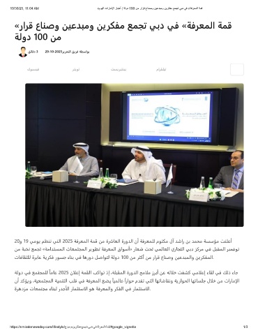 10/30/25, 11:04 AM «موﯾﻟا تارﺎﻣﻹا رﺎﺑﺧأ | ﺔﻟود 100 نﻣ رارﻗ عﺎﻧﺻو نﯾﻋدﺑﻣو نﯾرﻛﻔﻣ ﻊﻣﺟﺗ ﻲﺑد ﻲﻓ «ﺔﻓرﻌﻣﻟا ﺔﻣﻗ
