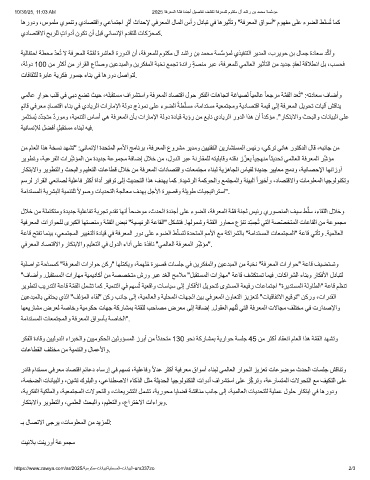 رﻣﺛﺗﺳُﯾ دّدﺟﺗﻣ ٌدروﻣو ،ﺔﯾﻣﻧﺗﻟا سﺎﺳأ ﻲھ ﺔﻓرﻌﻣﻟا نﺄﺑ تارﺎﻣﻹا ﺔﻟود ةدﺎﯾﻗ ﺔﯾؤر نﻣ ﻊﺑﺎﻧ يدﺎﯾرﻟا رودﻟا اذھ نأ ًادﻛؤﻣ ."رﺎﻛﺗﺑﻻاو ثﺣﺑﻟاو تﺎﻧﺎﯾﺑﻟا ﻰﻠﻋ