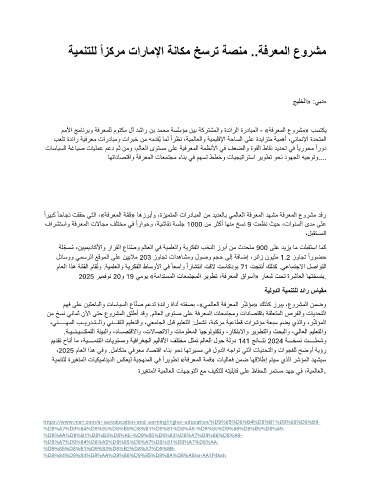 ممﻷا جمانربو ةفرعملل موتكم لآ دشار نب دمحم ةسﱠسؤم نيب ةكرتشملاو ةدئارلا ةردابملا « - ةفرعملا عورشم » بستكي