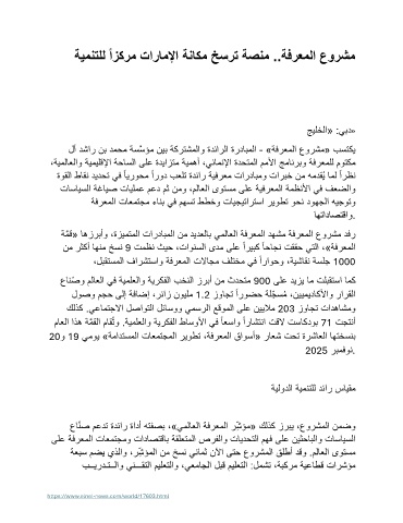 ةيمنتلل ًازكرم تارامﻹا ةناكم خسرت ةصنم ..ةفرعملا عورشم