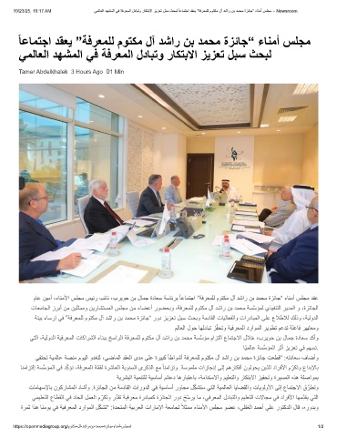 10/23/25, 10:17 AM ﻲﻣﻟﺎﻌﻟا دﮭﺷﻣﻟا ﻲﻓ ﺔﻓرﻌﻣﻟا لدﺎﺑﺗو رﺎﻛﺗﺑﻻا زﯾزﻌﺗ لﺑﺳ ثﺣﺑﻟ ً ﺎﻋﺎﻣﺗﺟا دﻘﻌﯾ ”ﺔﻓرﻌﻣﻠﻟ موﺗﻛﻣ لآ دﺷار نﺑ دﻣﺣﻣ ةزﺋﺎﺟ“ ءﺎﻧﻣأ سﻠﺟﻣ – Newsroom