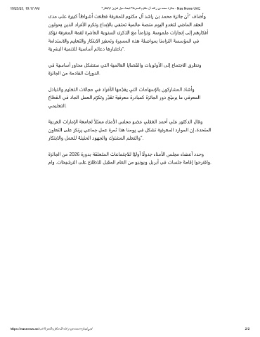 10/23/25, 10:17 AM "رﺎﻛﺗﺑﻻا زﯾزﻌﺗ لﺑﺳ ثﺣﺑﺗ "ﺔﻓرﻌﻣﻠﻟ موﺗﻛﻣ لآ دﺷار نﺑ دﻣﺣﻣ ةزﺋﺎﺟ - Nas News UAE