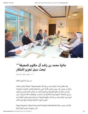 10/23/25, 10:17 AM "رﺎﻛﺗﺑﻻا زﯾزﻌﺗ لﺑﺳ ثﺣﺑﺗ "ﺔﻓرﻌﻣﻠﻟ موﺗﻛﻣ لآ دﺷار نﺑ دﻣﺣﻣ ةزﺋﺎﺟ - Nas News UAE