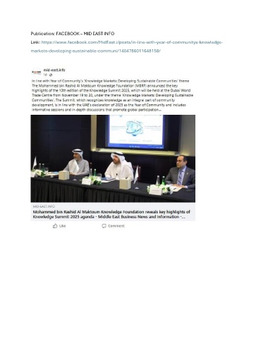 Publication: FACEBOOK – MID EAST INFO Link: https://www.facebook.com/MidEast.i/posts/in-line-with-year-of-communitys-knowledge- markets-developing-sustainable-communi/1404786011648158/