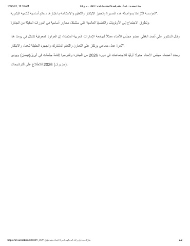 اذھ ﺎﻧﻣوﯾ ﻲﻓ لﻛﺷﺗ ﺔﯾﻓرﻌﻣﻟا دراوﻣﻟا نإ ،ةدﺣﺗﻣﻟا ﺔﯾﺑرﻌﻟا تارﺎﻣﻹا ﺔﻌﻣﺎﺟﻟ ًﻼﺛﻣﻣ ءﺎﻧﻣﻷا سﻠﺟﻣ وﺿﻋ ﻲﻠﻔﻐﻟا دﻣﺣأ ﻲﻠﻋ روﺗﻛدﻟا لﺎﻗو