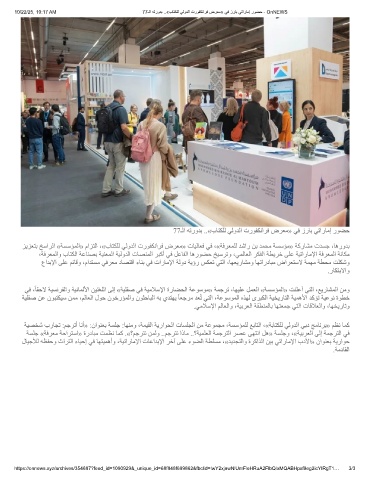10/22/25, 10:17 AM 77ـﻟا ﮫﺗرودﺑ ..«بﺎﺗﻛﻠﻟ ﻲﻟودﻟا تروﻔﻛﻧارﻓ ضرﻌﻣ» ﻲﻓ زرﺎﺑ ﻲﺗارﺎﻣإ روﺿﺣ - OnNEWS