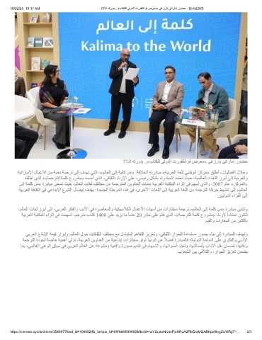 10/22/25, 10:17 AM 77ـﻟا ﮫﺗرودﺑ ..«بﺎﺗﻛﻠﻟ ﻲﻟودﻟا تروﻔﻛﻧارﻓ ضرﻌﻣ» ﻲﻓ زرﺎﺑ ﻲﺗارﺎﻣإ روﺿﺣ - OnNEWS