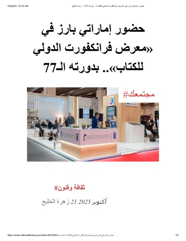 10/22/25, 10:16 AM ﺞﯾﻠﺧﻟا ةرھز - 77ـﻟا ﮫﺗرودﺑ ..«بﺎﺗﻛﻠﻟ ﻲﻟودﻟا تروﻔﻛﻧارﻓ ضرﻌﻣ» ﻲﻓ زرﺎﺑ ﻲﺗارﺎﻣإ روﺿﺣ