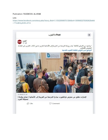 Publication: FACEBOOK- AL ARAB Link: https://www.facebook.com/story.php?story_fbid=1115329560751284&id=100068227526262&rdid =773zBE4y8VDhzEYU