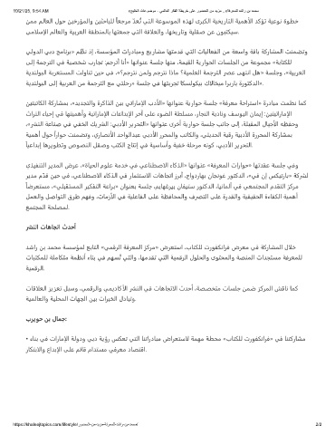 ﺪﺷار ﻦﺑ ﺪﻤﺤﻣ ﺔﺴﺳﺆﻤﻟ ﻊﺑﺎﺘﻟا «ﻲﻤﻗﺮﻟا ﺔﻓﺮﻌﻤﻟا ﺰﻛﺮﻣ» ضﺮﻌﺘﺳا ،بﺎﺘﻜﻠﻟ ترﻮﻔﻜﻧاﺮﻓ ضﺮﻌﻣ ﻲﻓ ﺔﻛرﺎﺸﻤﻟا لالﺧ