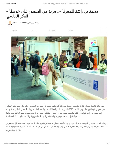 10/21/25, 9:54 AM «موﯾﻟا تارﺎﻣﻹا رﺎﺑﺧأ | ﻲﻣﻟﺎﻌﻟا رﻛﻔﻟا ﺔطﯾرﺧ ﻰﻠﻋ روﺿﺣﻟا نﻣ دﯾزﻣ ..«ﺔﻓرﻌﻣﻠﻟ دﺷار نﺑ دﻣﺣﻣ